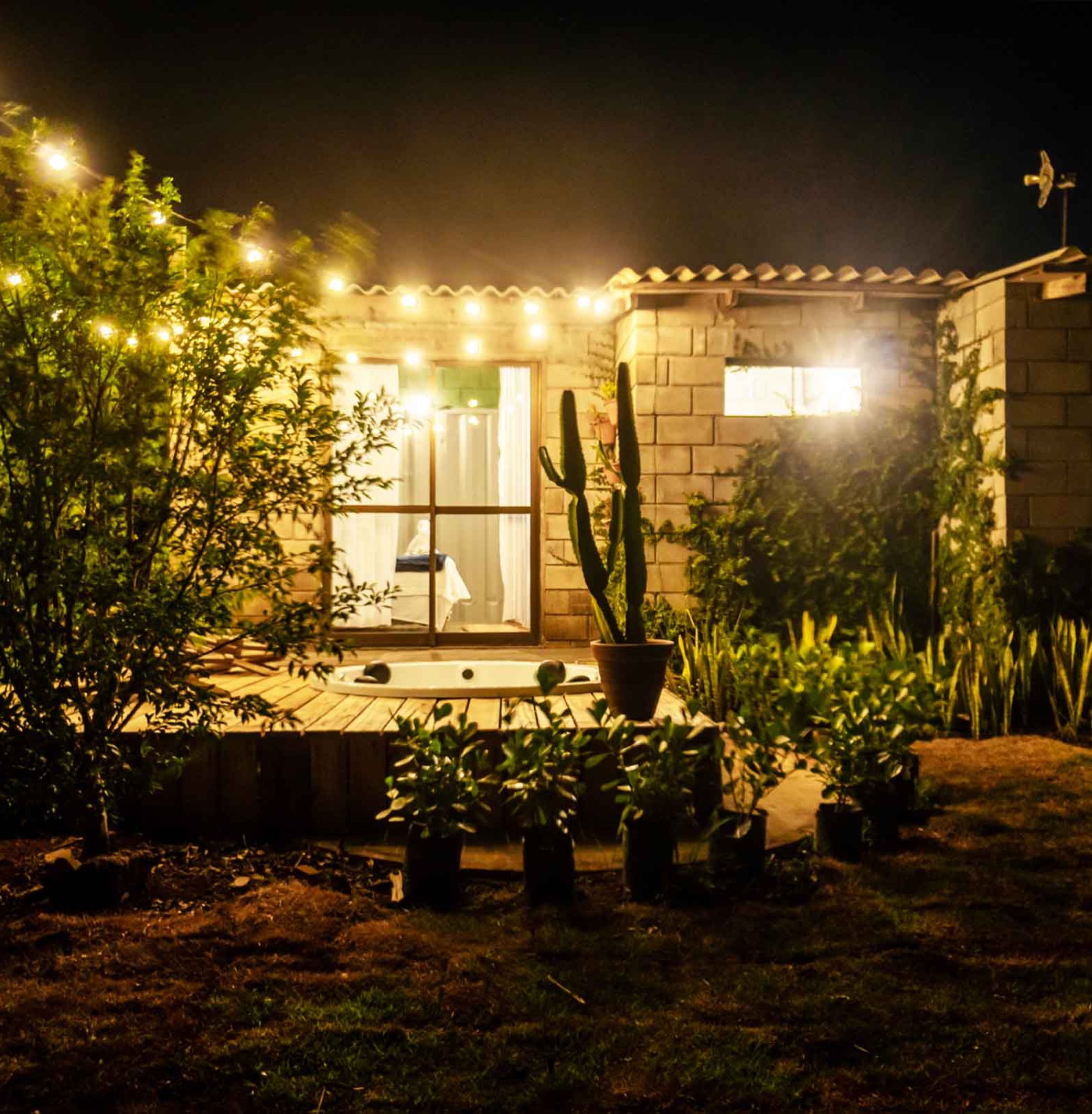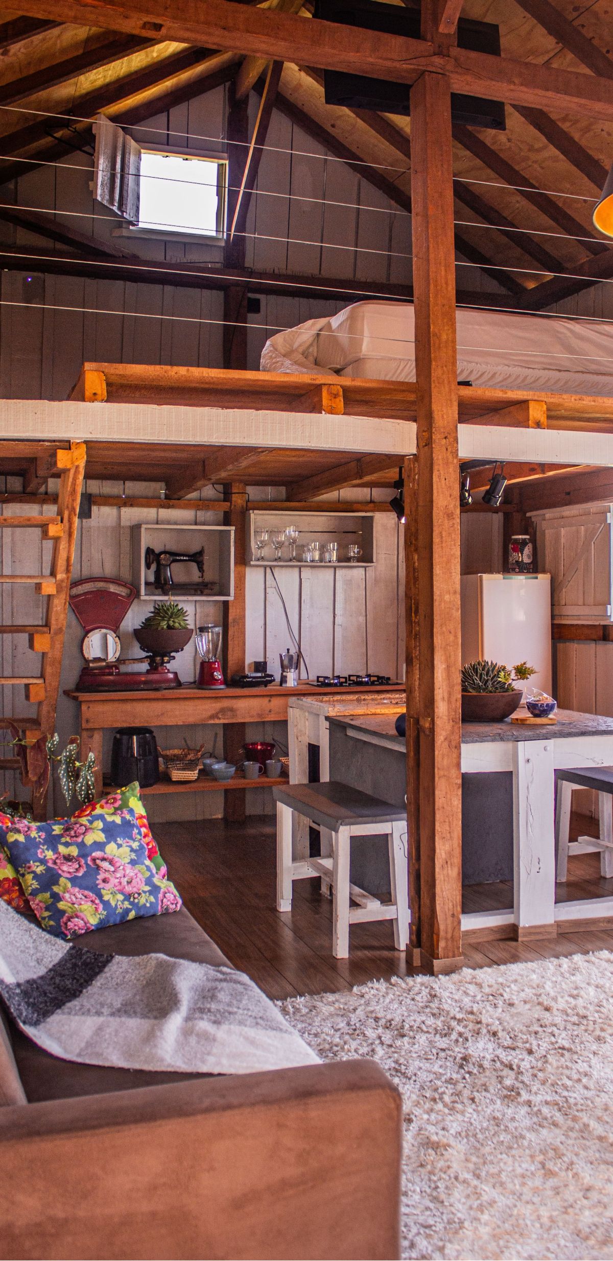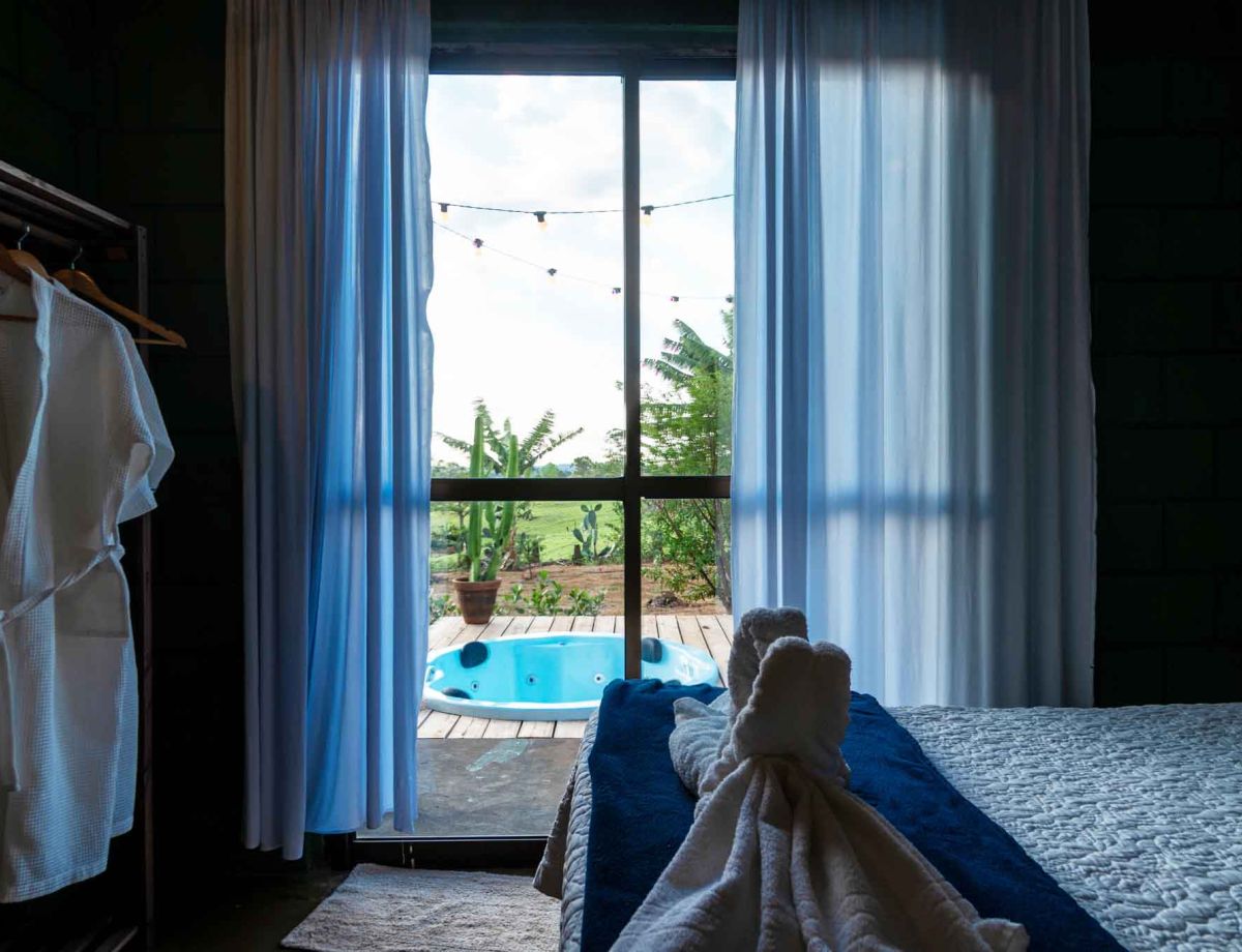 Casa Container acomoda até 4 pessoas, Cabana Tulha 2 pessoas, e Cabana Celeiro 2 pessoas.