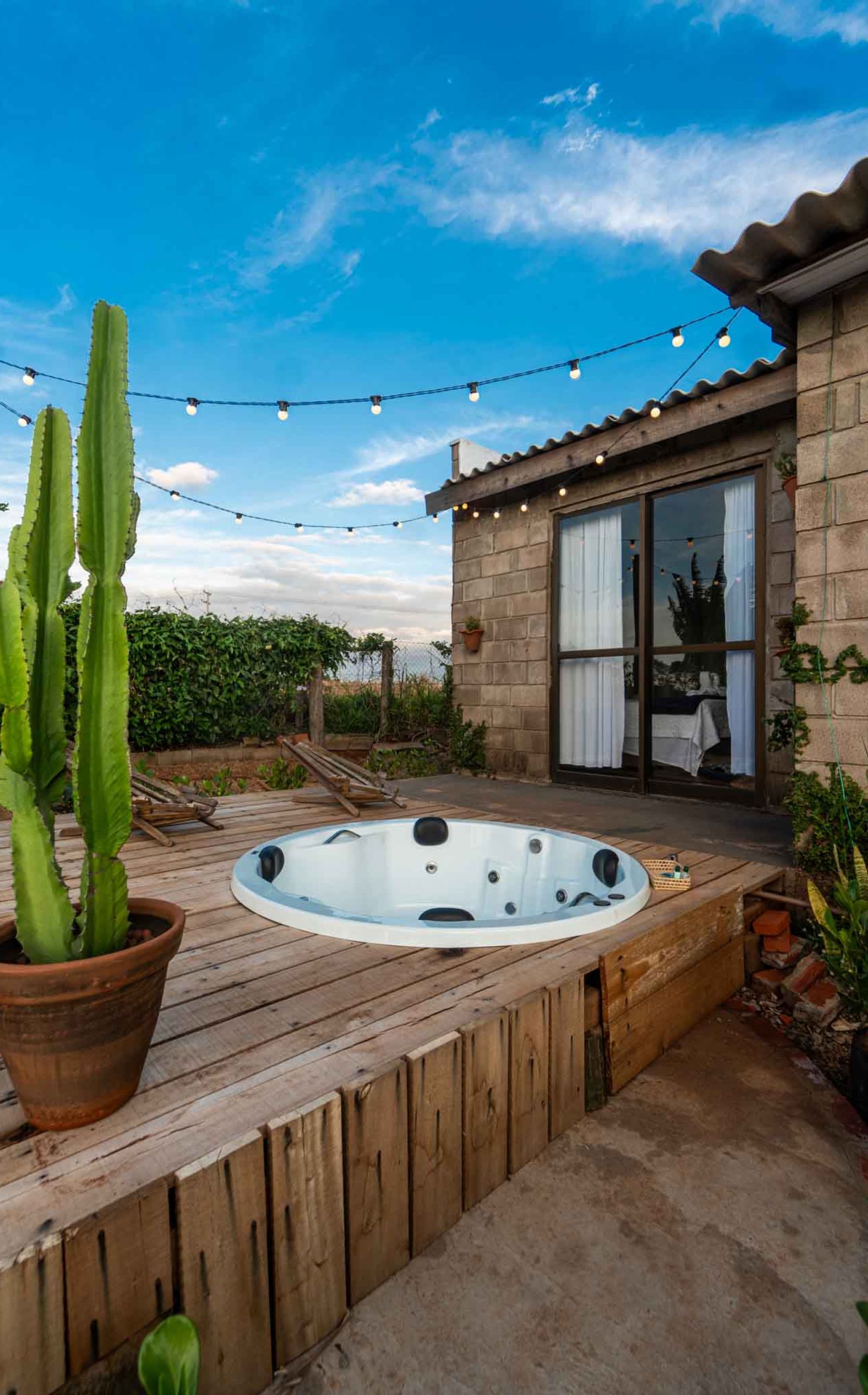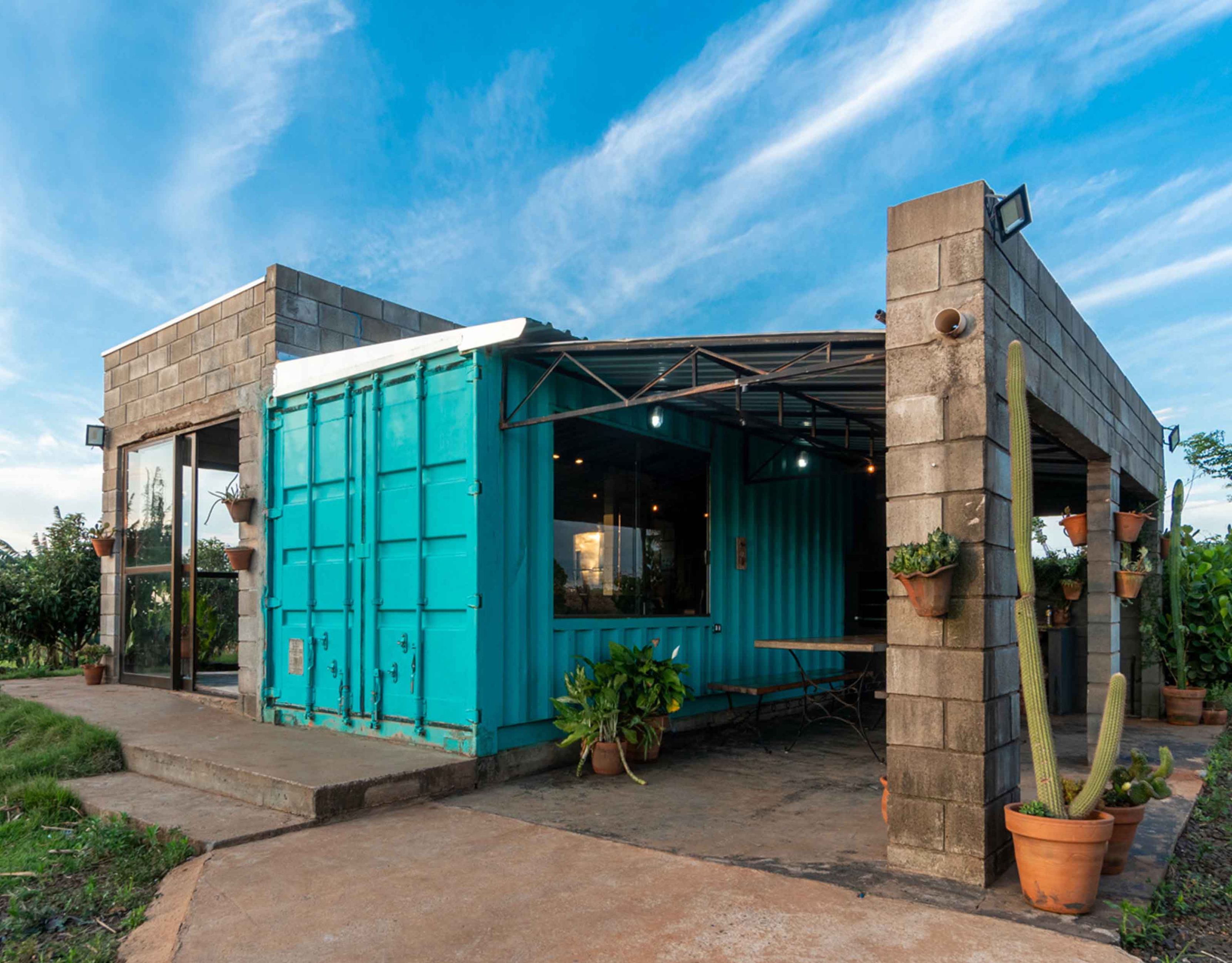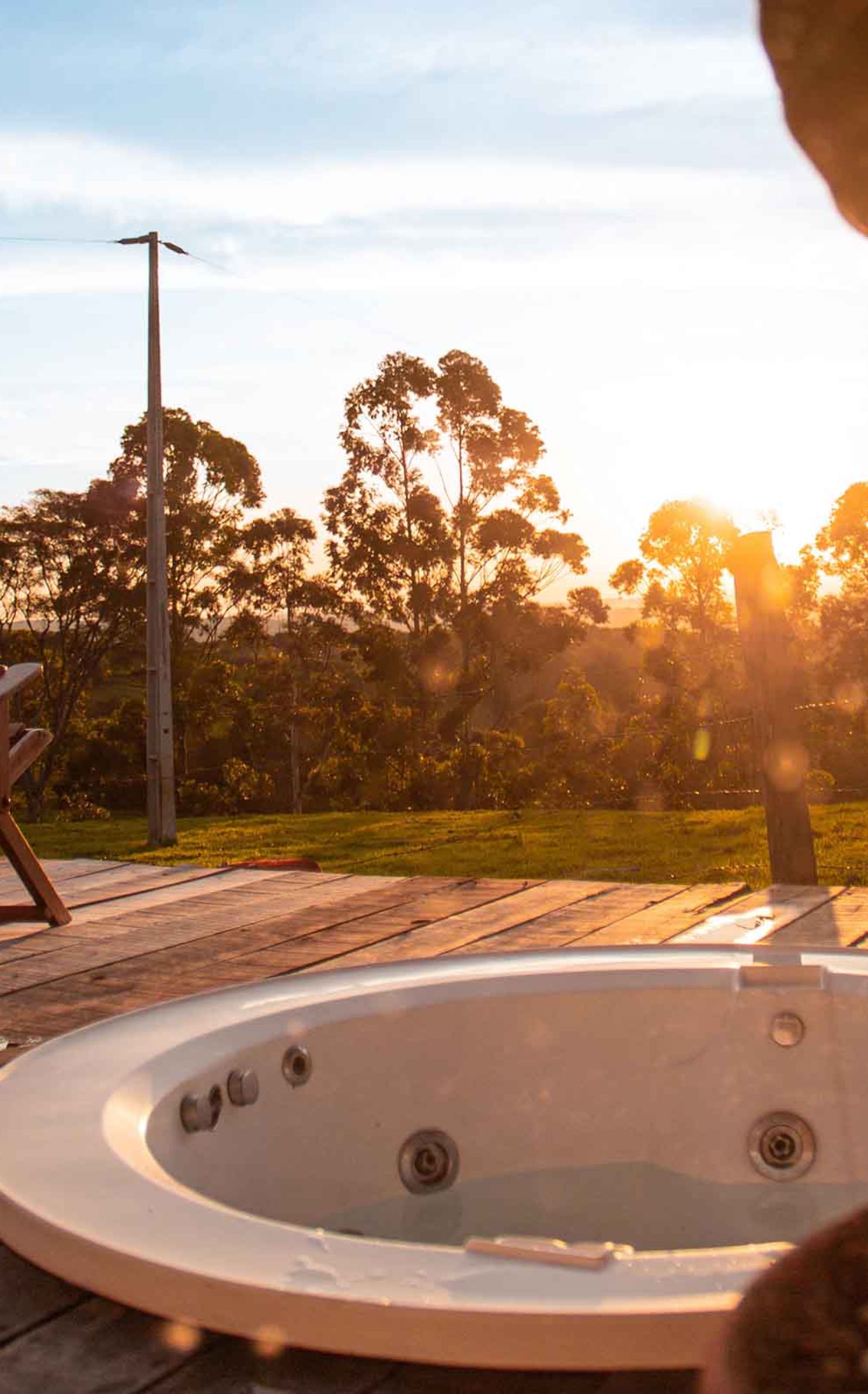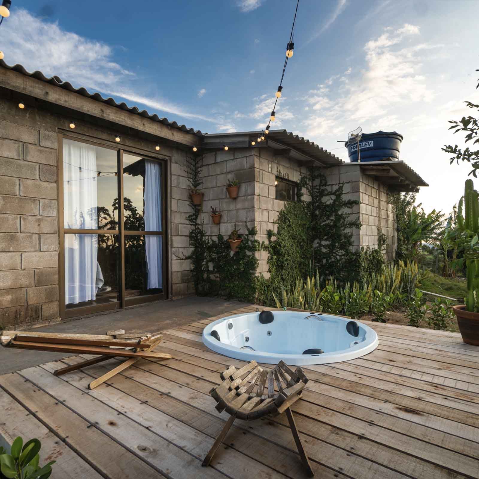 Casa Container acomoda até 4 pessoas, Cabana Tulha 2 pessoas, e Cabana Celeiro 2 pessoas.