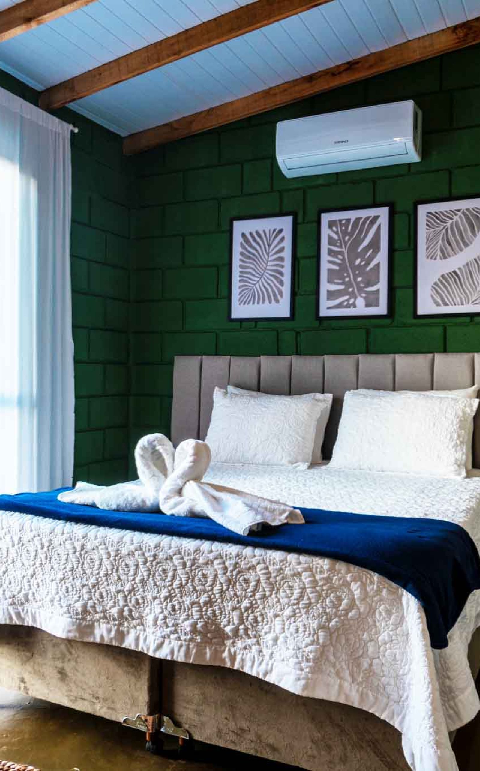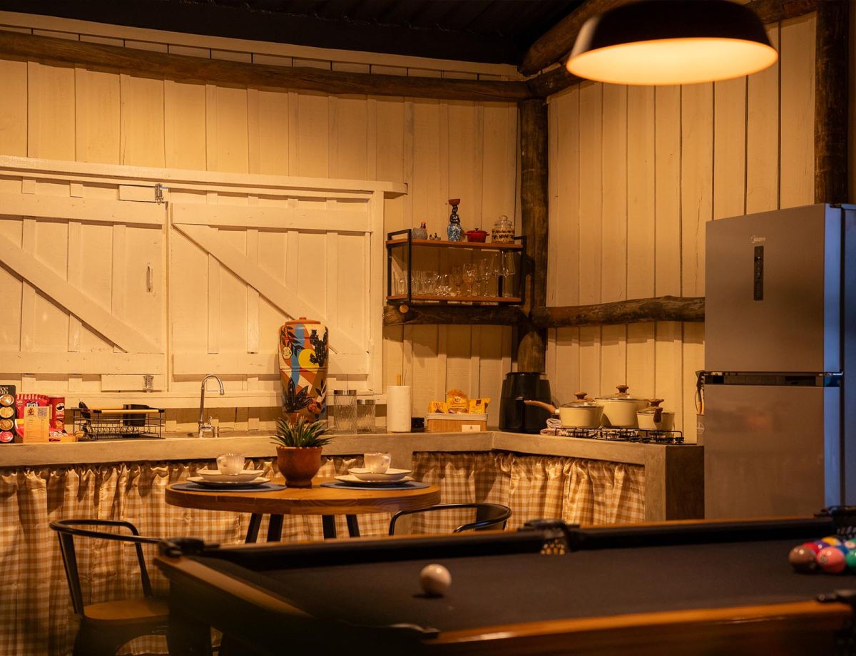 Sim, temos o café da manhã de boas-vindas incluso. Além disso, as acomodações têm a cozinha completa e churrasqueira para o hóspede trazer e preparar sua alimentação.